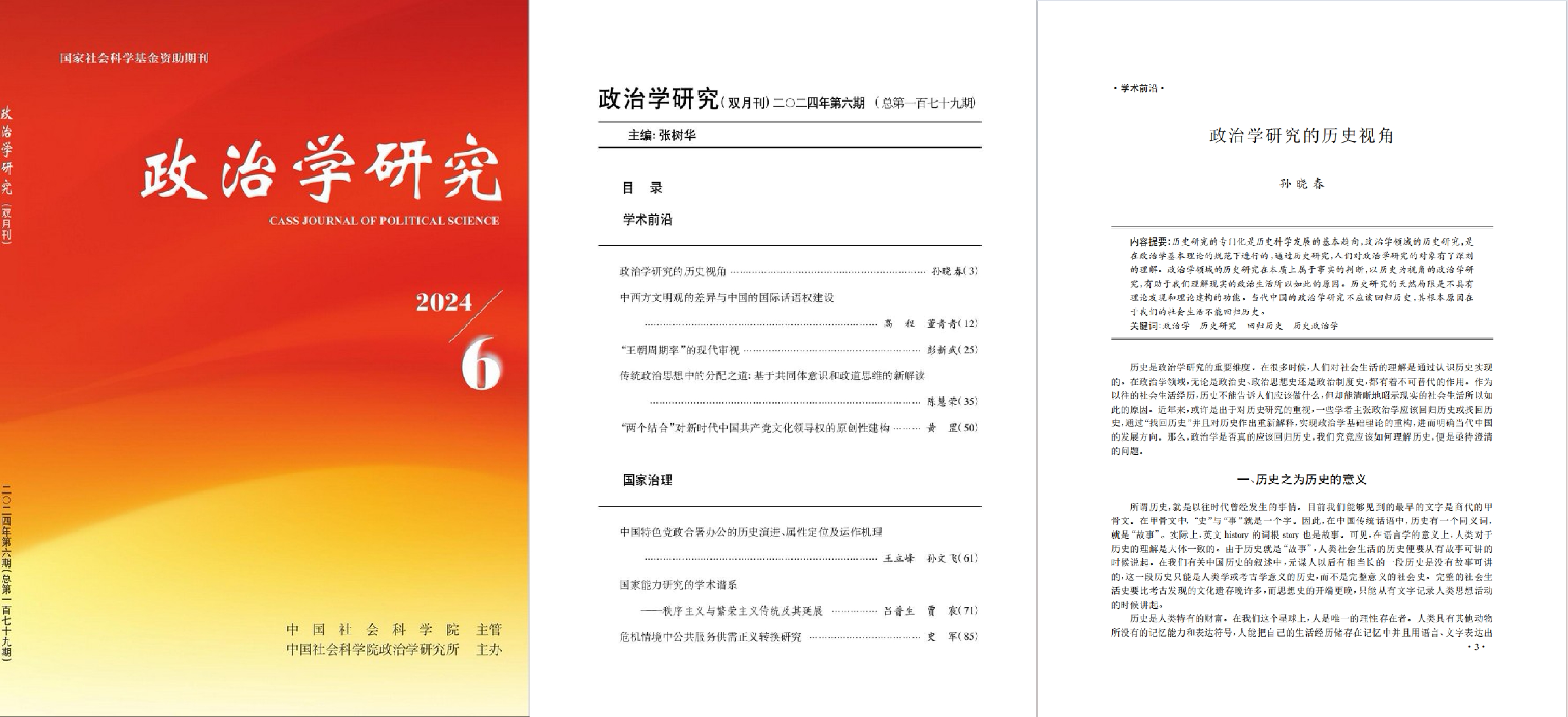近日,极速赛车 孙晓春教授研究成果《政治学研究的历史视角》在《政治学研究》2024年第6期发表。