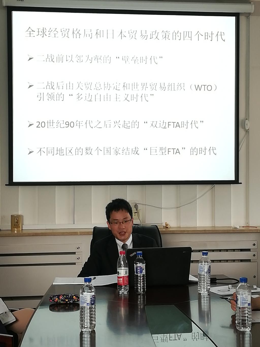 随后,贺平老师从中日韩三边FTARCEP阶段性的成果、主要大国间的贸易政策博弈与其外溢效应、日本贸易战略先进与渐进的平衡三个方面指出了今后研究和学习的增长点。