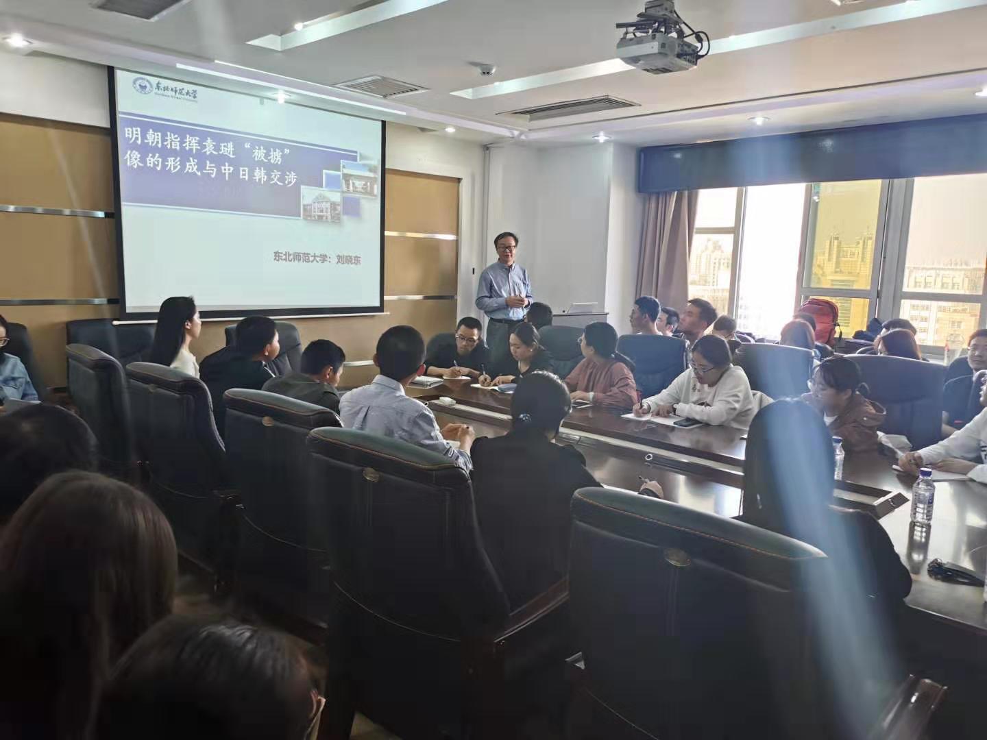 首先,刘晓东教授从选题角度入手,提出选题的脉络为有小渗大,表明历史瞬间的事件亦能够反映出当时东亚区域秩序的样态,并探讨了“宁波争贡事件”作为明·日关系中的转折事件需进一步思考,从多角度分析了其并非根本性转折。除此之外,重点阐述了明朝指挥袁琎被俘事件在东亚诸国交涉中的重要影响及其发展为东亚区域主流性描述的成因,得到了许多学生们的反响与共鸣。随后,师生们对于此次专题展开了激烈的讨论,提出了明朝政府的上贡原则以及学科分解等问题,刘晓东教授都予以了悉心解答,并希望同学们能够见微知著,开拓思维,从历史瞬间中找寻出更多值得探究的内容。