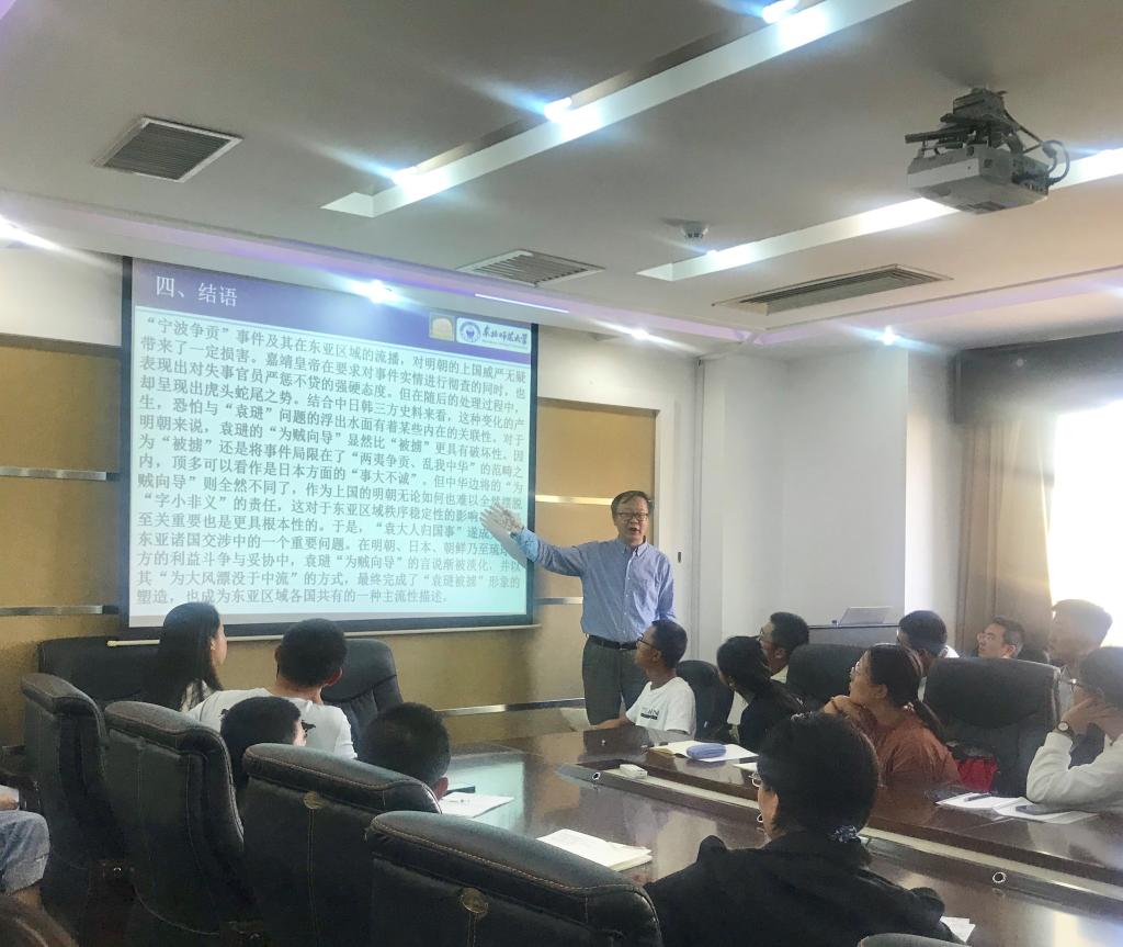 的学生参加此次讲座。本次讲座围绕明朝“宁波争贡事件”的历史瞬间分析了对东亚区域秩序体系的影响,使同学们受益匪浅。