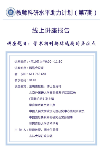 副院长,《国际论坛》杂志副主编王明进老师担任主讲嘉宾,作题为“学术期刊编辑选稿的关注点”的学术讲座。极速赛车