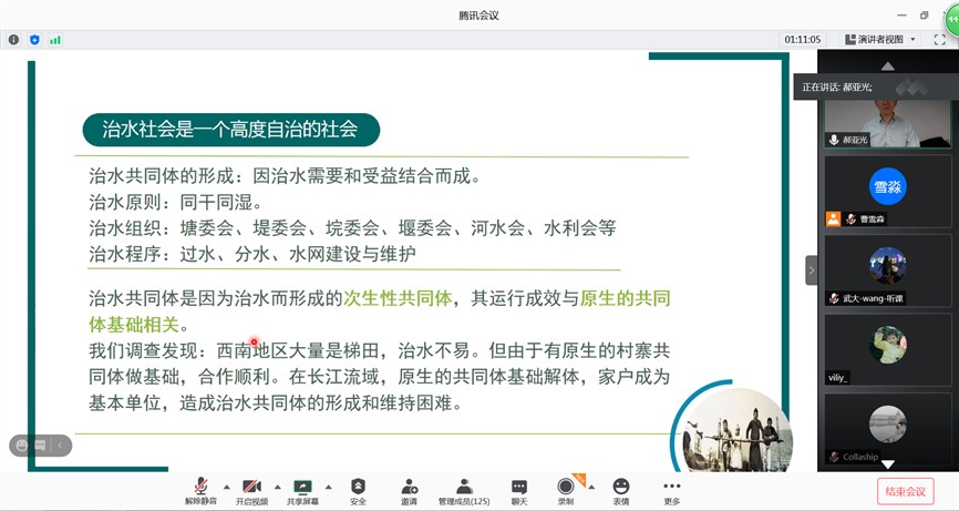 本次讲座邀请华中师范大学中国农村研究院教授、博士生导师、全国基层政权和社区建设专家委员会委员、湖北省政治学会秘书长郝亚光老师担任主讲人,作了题为“治水社会:被东方专制主义遮蔽的社会治水”的主题报告。极速赛车