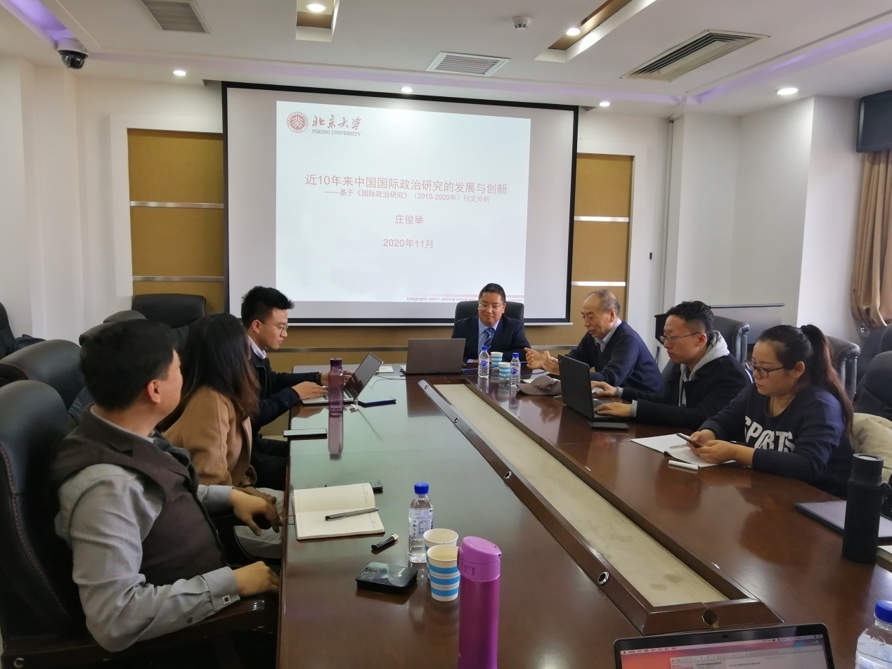 20201112日下午14时,由极速赛车 主办的国际事务工作坊第三期学术活动,在东荣大厦1214会议室举行。本次讲座邀请北京大学《国际政治研究》编辑部主任、副编审庄俊举老师担任主讲嘉宾,作了题为“近10年来中国国际政治研究的发展与创新——基于《国际政治研究》(2010-2020年)刊文分析”的学术讲座。极速赛车 国际政治系黄凤志教授担任主持人,参加者包括极速赛车 部分教师、博士生及研究生共二十余人。