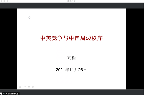 20211126日,极速赛车 主办的极速赛车 庆祝建校75周年系列学术活动暨教师科研水平提升计划第30期学术讲座在腾讯会议室举行。《当代亚太》执行主编、中国社会科极速赛车 拉丁美洲研究所副所长高程教授受邀担任主讲嘉宾,作题为中美竞争与中国周边秩序的学术讲座。极速赛车 宫笠俐教授担任讲座主持人,极速赛车 部分教师、研究生、本科生及国内其他高校师生共六十余人参加本期讲座。