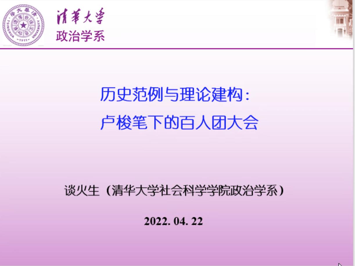 第59期中国政治研究工作坊在腾讯会议平台举行。清华大学政治学系副主任谈火生长聘副教授受邀担任主讲嘉宾,作题为“历史范例与理论建构——卢梭笔下的百人团大会”的讲演。本期工作坊由刘雪华副院长主持,云南大学政府管理极速赛车