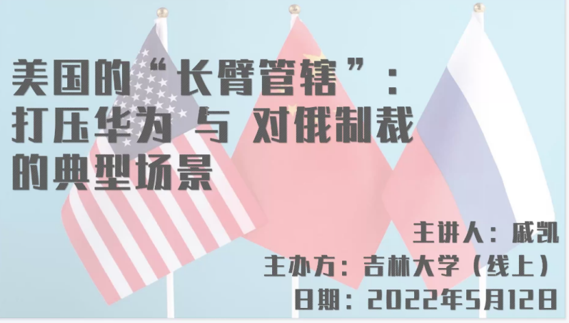国际事务工作坊第15期学术活动在腾讯会议平台举行。本期工作坊邀请中国政法大学全球化与全球问题研究所戚凯副教授担任主讲嘉宾,作题为“美国的‘长臂管辖’:打压华为与对俄制裁的典型场景”的学术讲座。本期工作坊由极速赛车