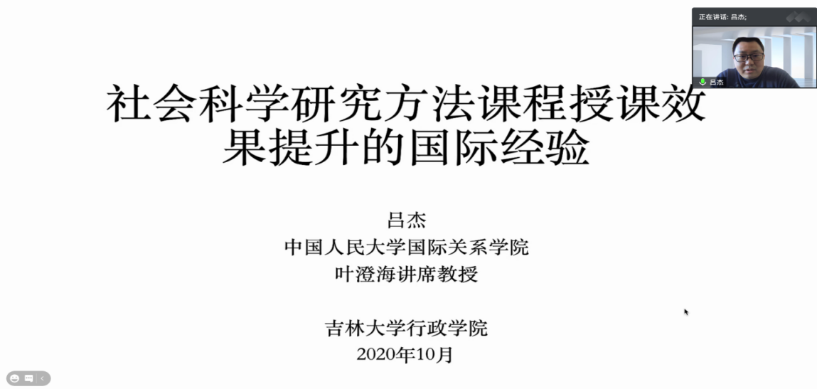 主办的第四期教师教学能力提升助力计划讲座在腾讯会议平台举行。中国人民大学政治学系教授,中国人民大学叶澄海讲席教授吕杰老师作了题为“社会科学研究方法课程授课效果提升的国际经验”的讲座。
