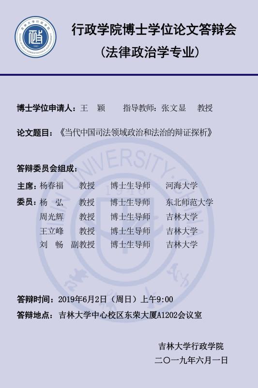 答辩学生:王颖、刘闯(答辩顺序以导师姓氏笔画为序,同一导师名下学生按姓氏笔画为序)