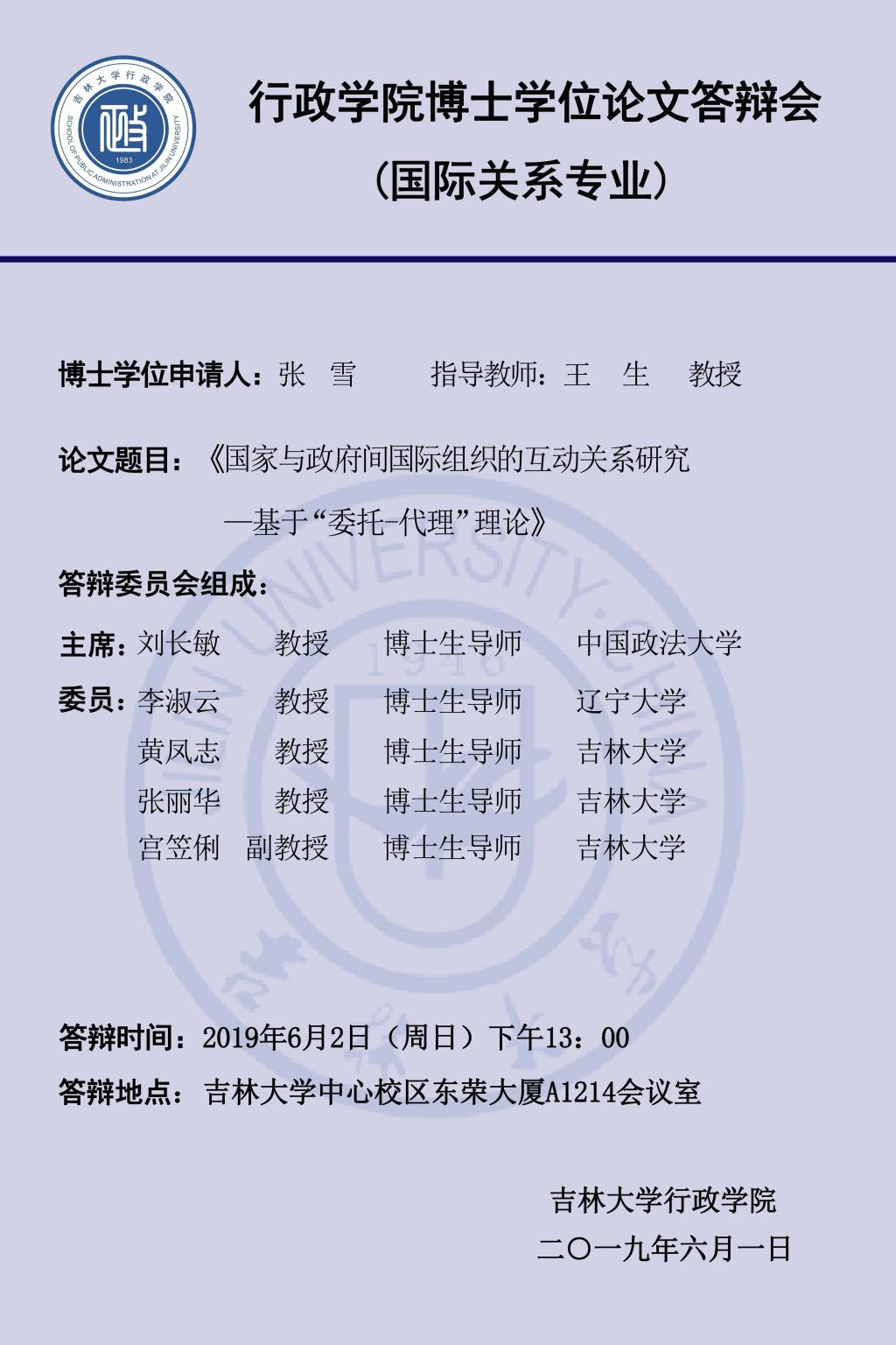 答辩学生:张雪、王博文、丁菱、罗肖、魏永艳(答辩顺序以导师姓氏笔画为序,同一导师名下学生按姓氏笔画为序)