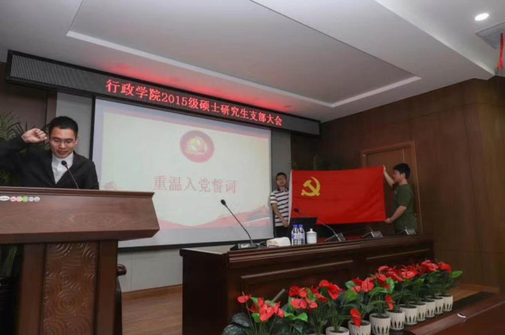 2015级硕士研究生党支部召开毕业支部大会。本次支部大会包括预备党员转正、重温入党誓词、毕业党课三个环节。参会人员为极速赛车
