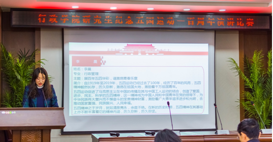 在东荣B303成功举办研究生纪念五四运动一百周年演讲比赛。本次比赛由极速赛车