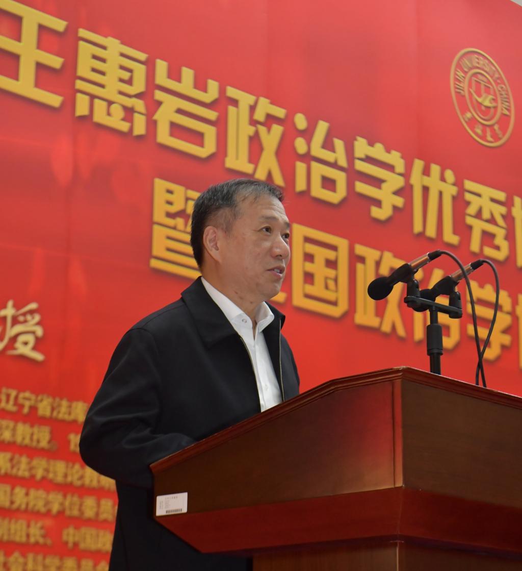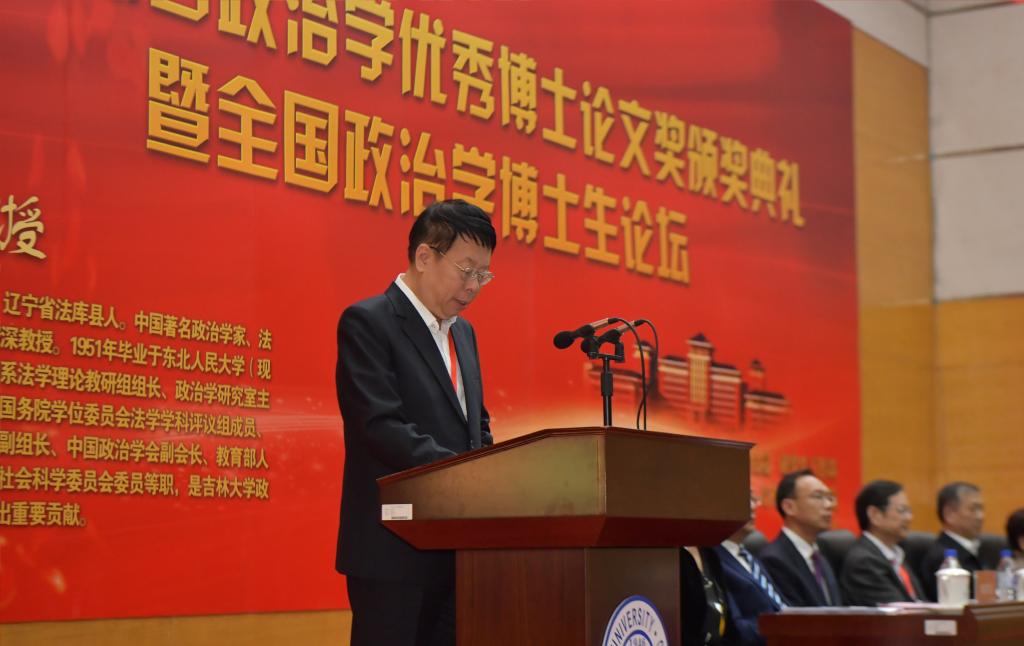 全体师生向参加颁奖典礼的各位嘉宾表示热烈的欢迎。他在致辞中介绍了王惠岩政治学优秀博士论文奖设立初衷,并详细说明了首届王惠岩政治学优秀博士论文奖的评审过程,并对中国人寿保险股份有限公司吉林省分公司、中国政治学学界前辈和各位同仁、极速赛车