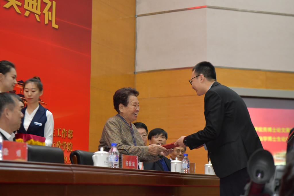 党委书记杨振斌向论文指导教师代表潘小娟教授、张光教授、周光辉教授、王彩波教授等颁发荣誉证书。
