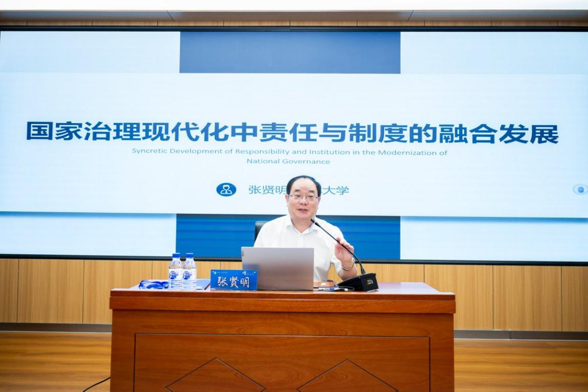 匡亚明学者杰出教授张贤明,以《国家治理现代化中责任与制度的融合发展》为题,围绕制度与责任的关系,指出在国家治理现代化的语境下,“负责任的政治”意味着发挥中国共产党的引领作用,坚持人民性的价值方向,在多元主体主动负责的惯习形成过程中实现过程负责和结果负责的有机统一。