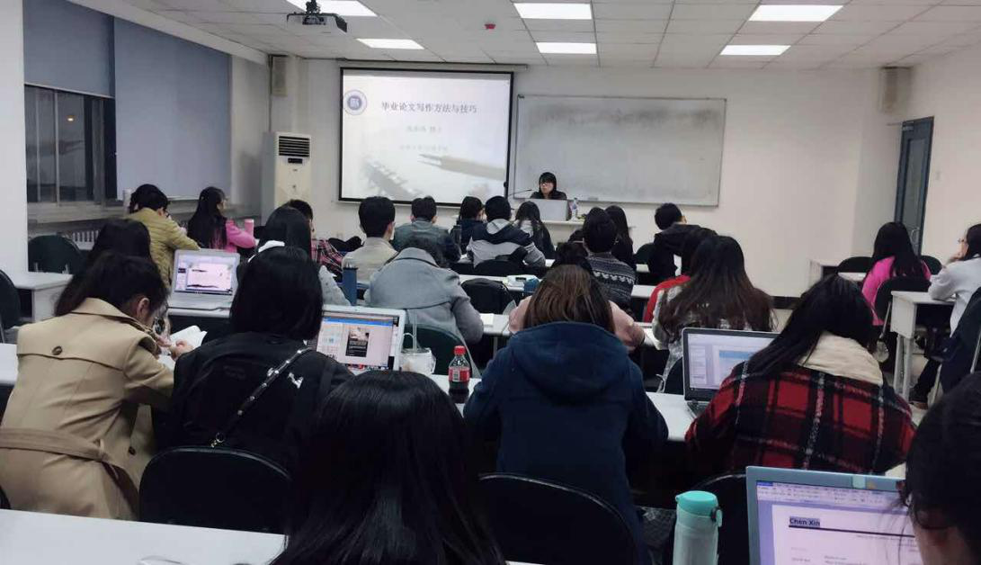 研究生会积极搭建平台,邀请丛永清老师为研究生们讲解毕业论文的写作技巧。前来听讲座的研究生非常踊跃,教室里座无虚席。