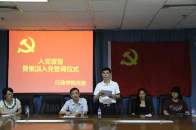 26日下午4时30分,伴着慷慨激昂的义勇军进行曲,入党宣誓暨重温入党誓词仪式正式开始。首先由邵薪运、曲畅竹分别宣读2015年上半年研究生、本科生新发展党员名单。随后,两名新党员代表王文江、杨端程和两名老党员代表贾茹、马瑞依次进行发言。他们表示,通过学习马克思主义的基本理论,参与党组织的各种活动,将理论与实践结合起来,时刻保持党员的先进性、纯洁性,使自己能够更好地运用马克思主义的立场、观点和方法去分析、解决问题,坚定为共产主义事业奋斗终身的理想信念。在今后的学习工作中,无论扮演何种社会角色,都会竭尽个人所能,服务社会,自觉为实现中华民族伟大复兴的中国梦奉献青春、智慧和力量。接着由本科生党支部书记任建国领誓,带领大家重温入党誓词。