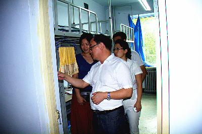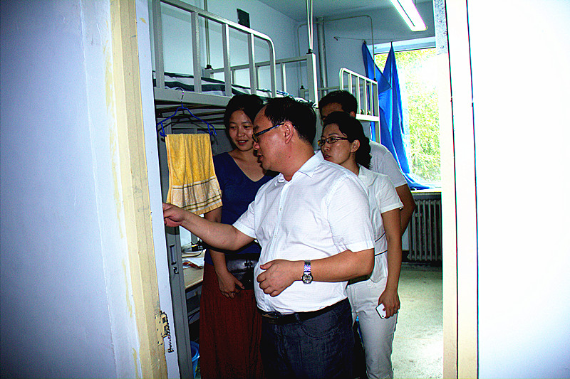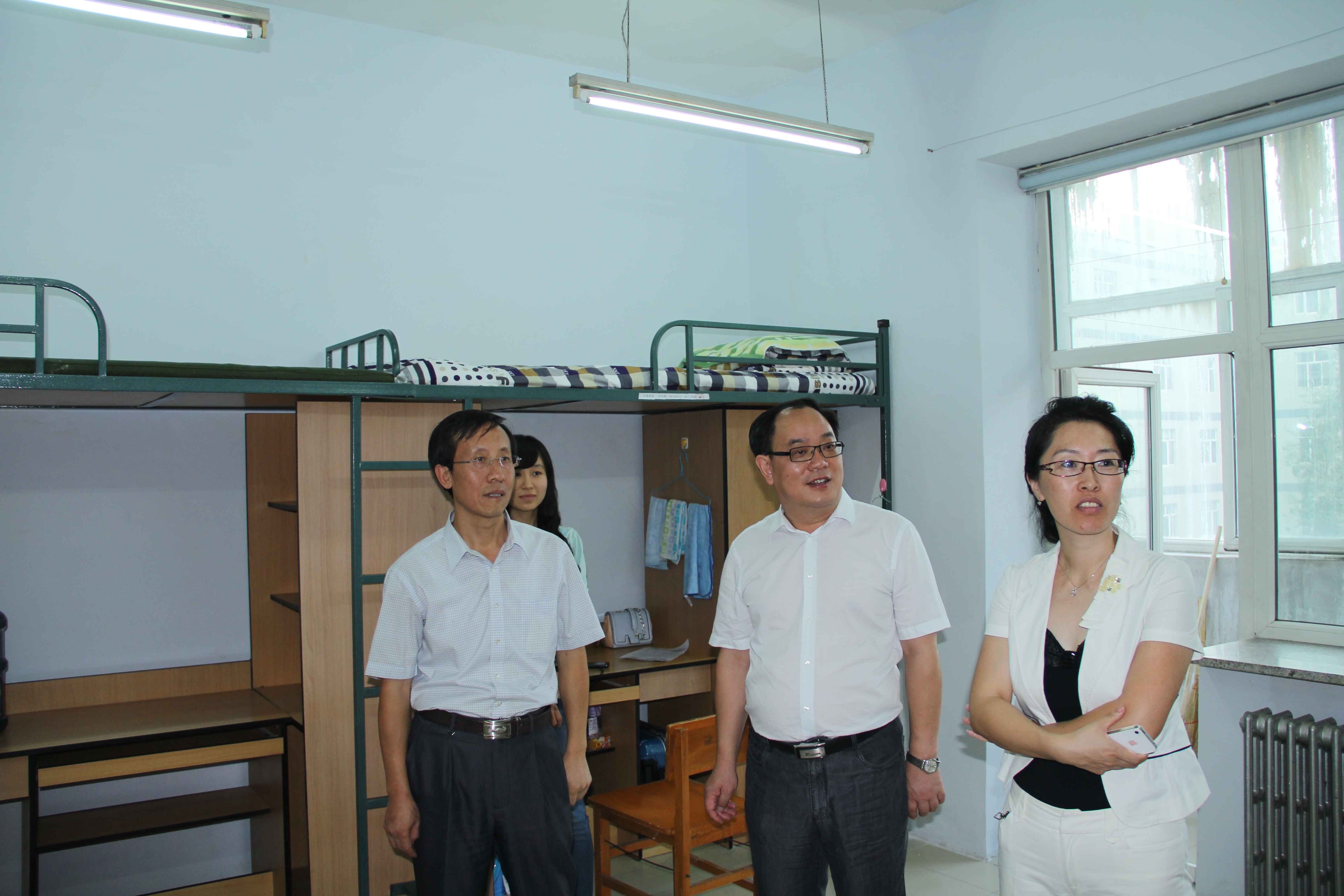 各学生组织负责人和2014级新生代理班主任的陪同下,来到了2014级本科生寝室看望新生。