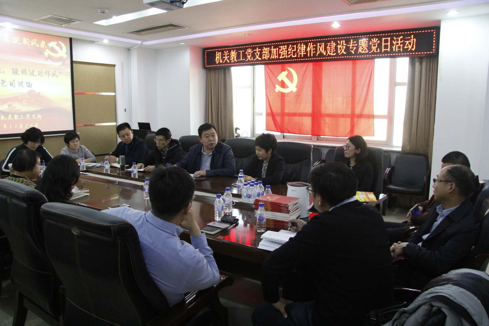 开展干部作风整顿活动为契机,结合学习落实《中国共产党支部工作条例(试行)》,于2018年11月29日下午,组织开展“迈进新时代 展现新风采—机关教工党支部‘坚定理想信念 强化纪律规矩’专题党日活动”,支部邀请极速赛车