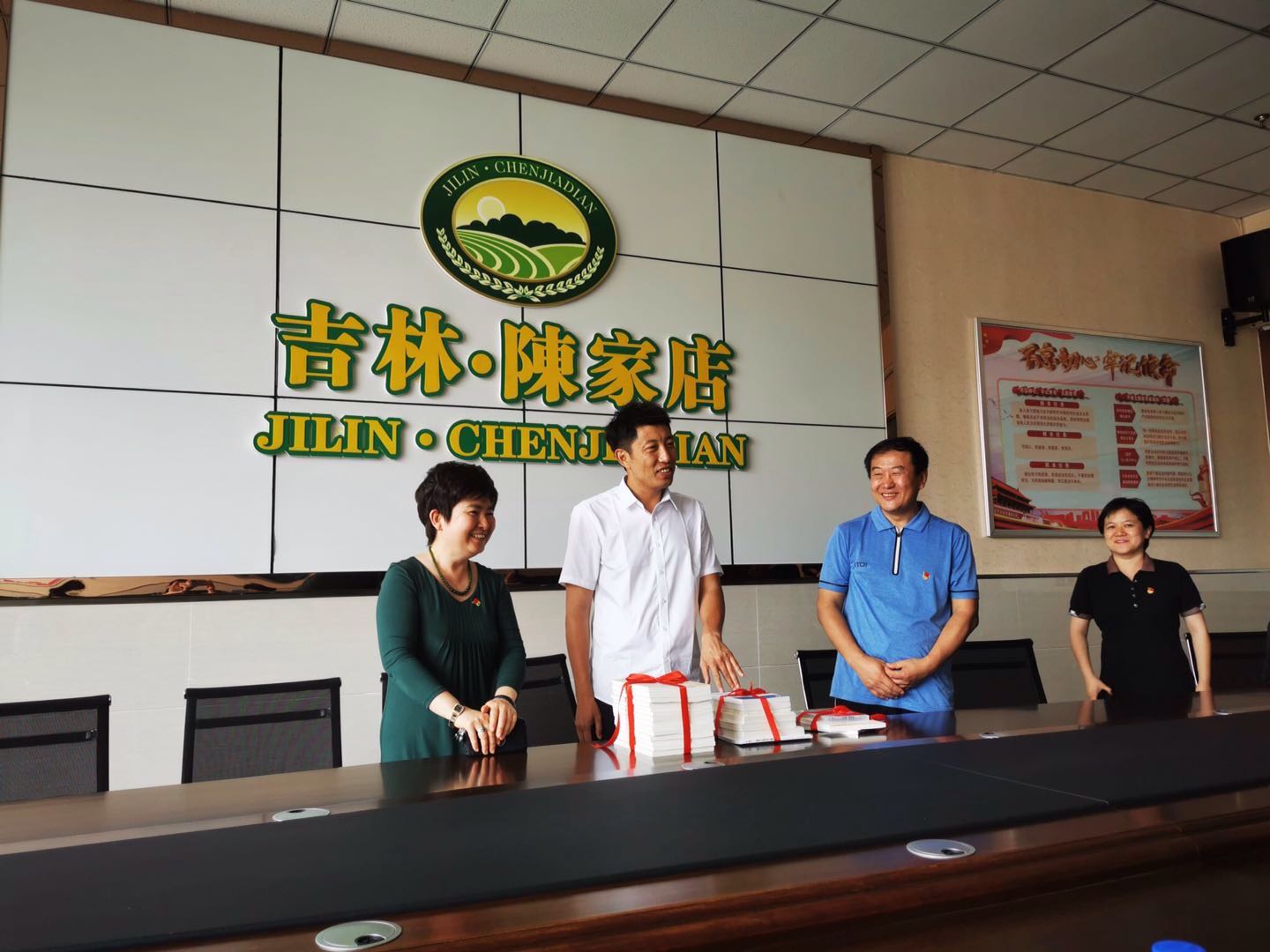 魏鹤影书记代表参加活动的两个支部向村党委对此次活动的大力支持表示了感谢,并赠送了支部精心准备的包括《习近平新时代中国特色社会主义思想学习纲要》《习近平关于“三农”工作论述摘编》等习近平总书记重要论述文献,另外还赠送了黄大年事迹纪录片和《时代楷模黄大年》等书籍。支部党员们还在电子政务系党支部书记李国梁的带领下,在党旗前庄严重温入党誓词,表达为党的事业不懈奋斗的决心。