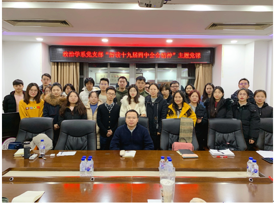 副院长殷冬水教授解读十九届四中全会精神。来自政治学专业的研究生党员、积极分子参加了本次党课学习。系党支部书记刘畅主持活动。
