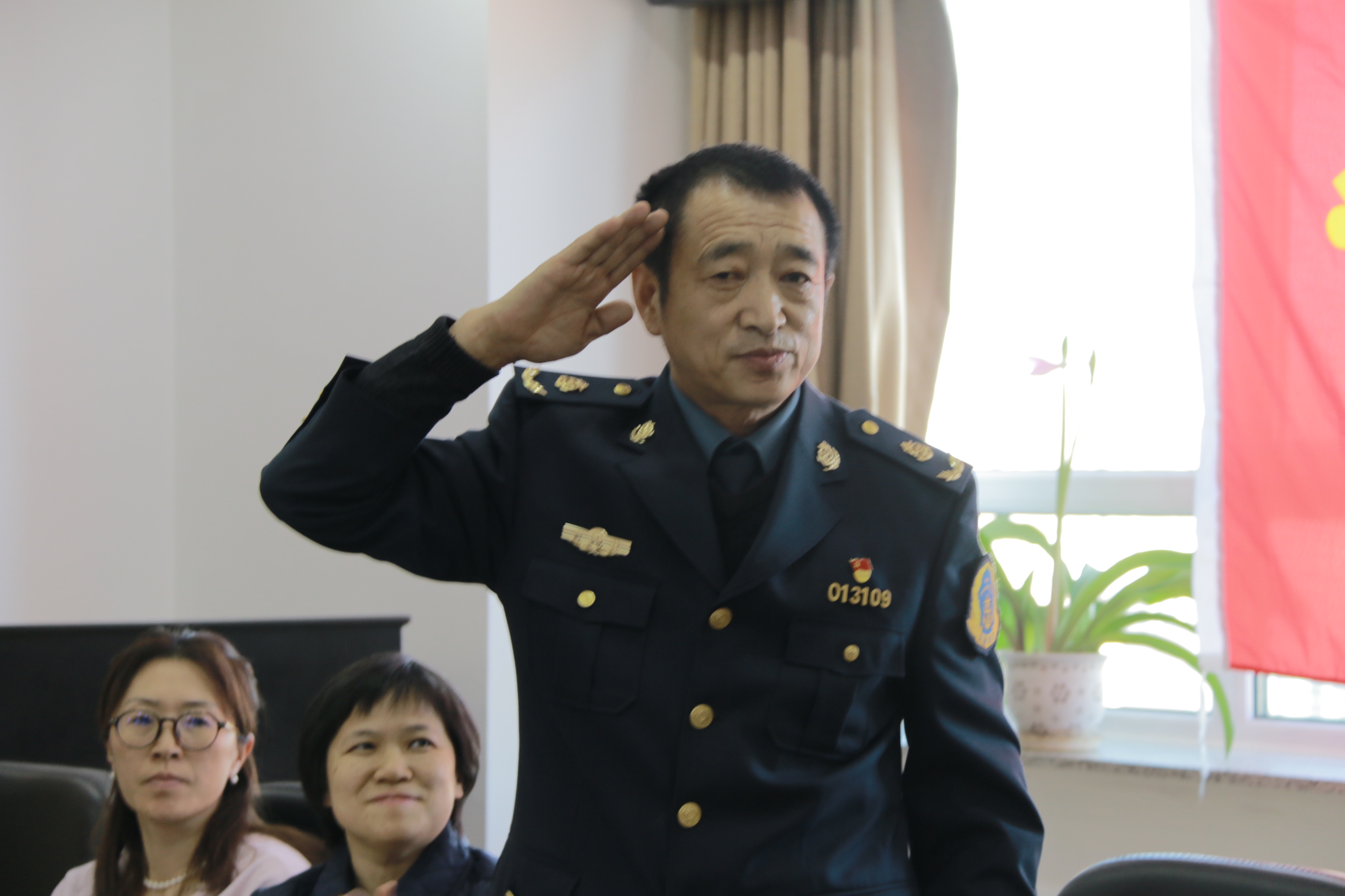 在党课的讲授中,李付军用质朴的声音和语言,讲述了他出生入死,血洒南疆的峥嵘岁月,介绍了他恪尽职守,忠诚担当的职业追求,表达了他坚强执着,乐观豁达的生活态度。他的人生正如在南疆战场上写下的战斗留言那样,“名字是母亲给的,历史是自己写的,我要把名字和历史写在火红的战旗上,使其光照人间。”李付军不仅把名字写在了飘扬战旗上,更把名字刻进了共和国的丰碑上和人民的心坎里。