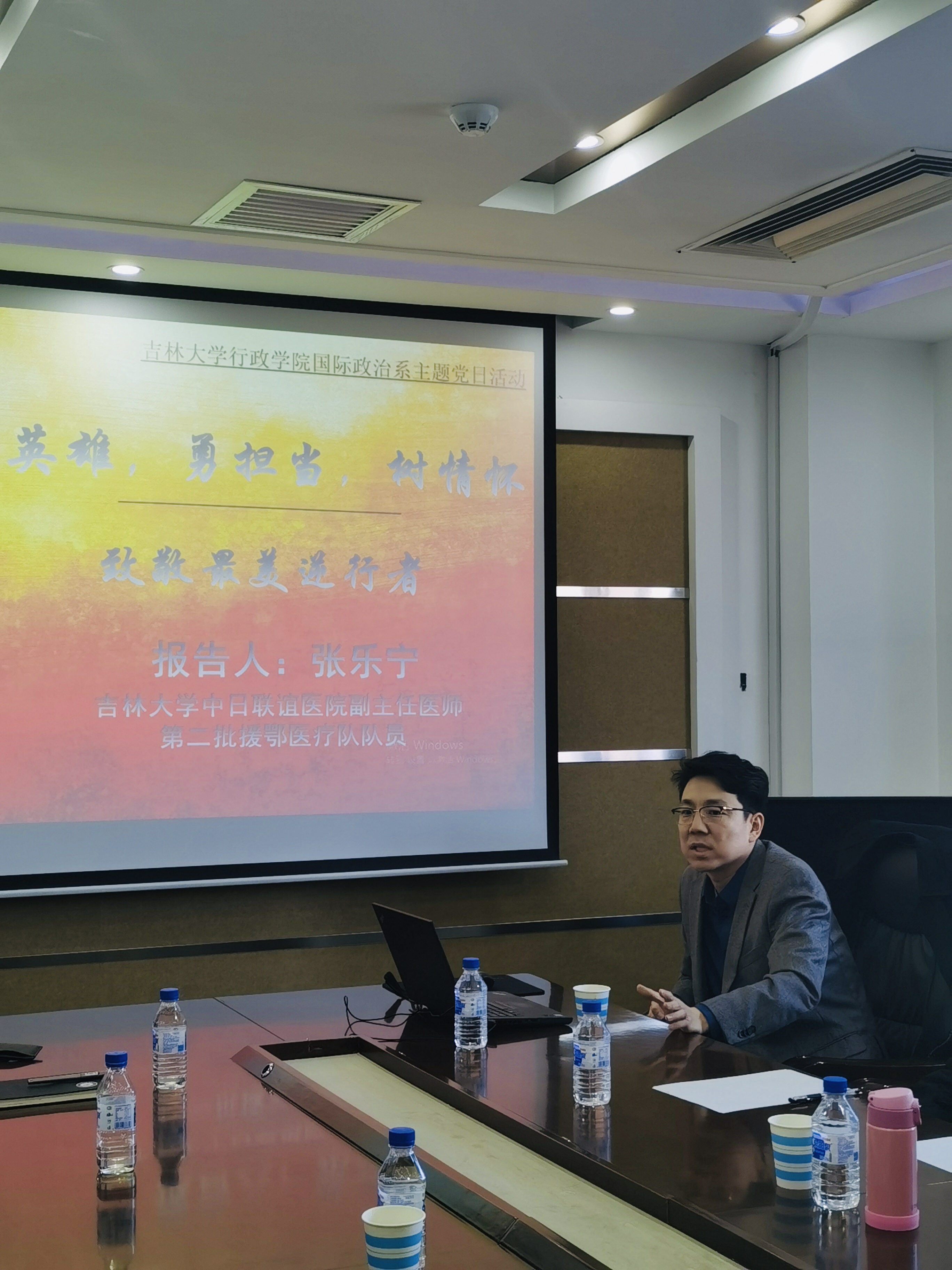 为弘扬伟大抗疫精神,激励各位党员同志的责任感和家国情怀,2020年12月16日,国际政治教工党支部在东荣大厦1214会议室举办了以“学英雄,勇担当,树情怀——致敬最美逆行者”为主题的专题党课。支部特意邀请到吉林省第二批援鄂医疗队队员、极速赛车