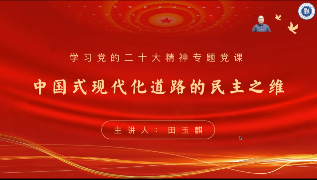 田玉麒副教授以“中国式现代化道路的民主之维”为题,从全过程人民民主是中国式民主新形态、全过程人民民主的温度、全过程人民民主的广度、全过程人民民主的效度四个方面展开专题党课讲授。他谈到,中国式现代化是新时代新征程中国共产党的使命任务,中国式现代化的民主之维就是要发展全过程人民民主,保障人民当家作主。田玉麒副教授指出全过程人民民主是中国式民主新形态,是中国式民主的时代诠释,丰富了人类政治文明新形态,具有多样化的制度安排。
