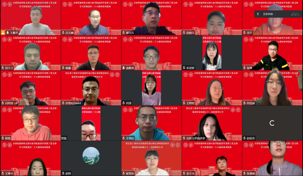 政治学系教工党支部充分发挥全国党建工作样板支部的引领作用联合博士生党支部开展“深入学习贯彻党的二十大精神系列党课”。2022年11月2日,极速赛车