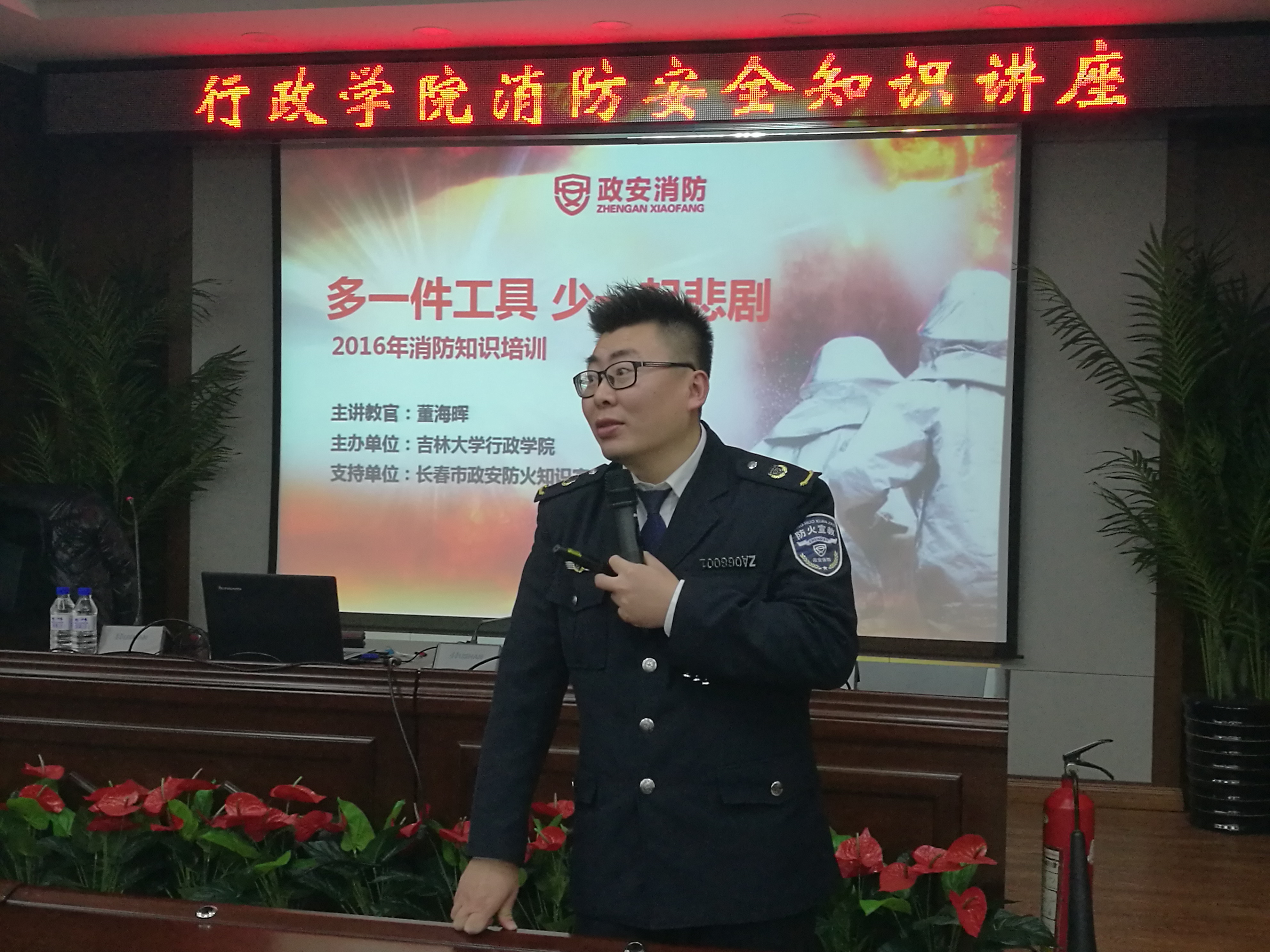 邀请长春政安防火知识宣传中心董海辉主任在东荣B303会议室举办了一场消防安全知识讲座。