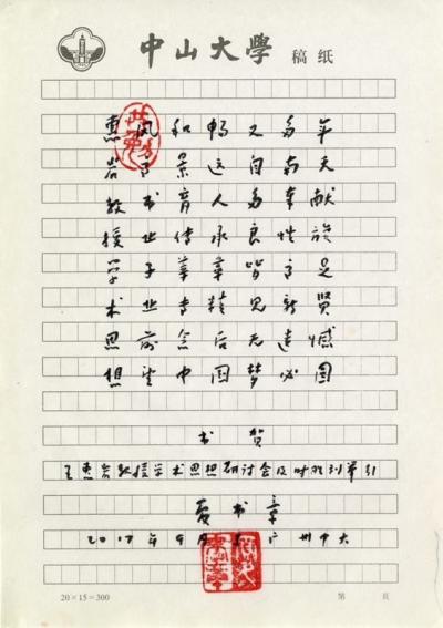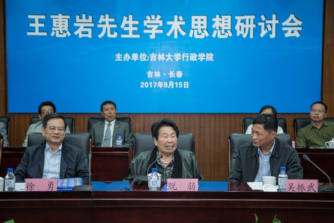 会上还特别展示了中山大学夏书章教授赠送的“惠岩教授学术思想”八字藏头诗和王惠岩先生在中山大学参加活动的珍贵照片。