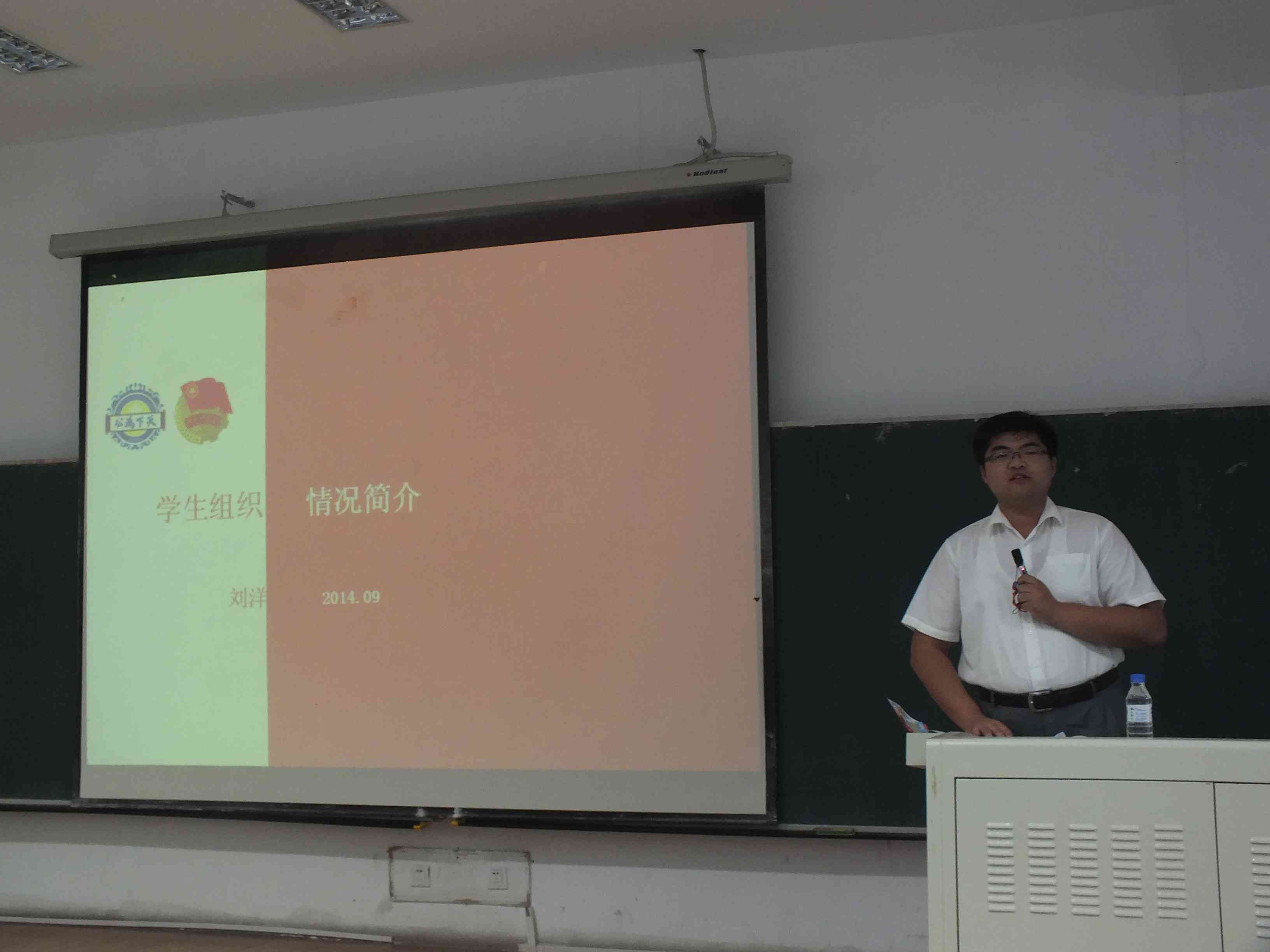 辅导员刘洋在团学教育中,对校院两级学生组织做出了介绍,鼓励新生积极参加到学生组织中服务师生、收获成长。