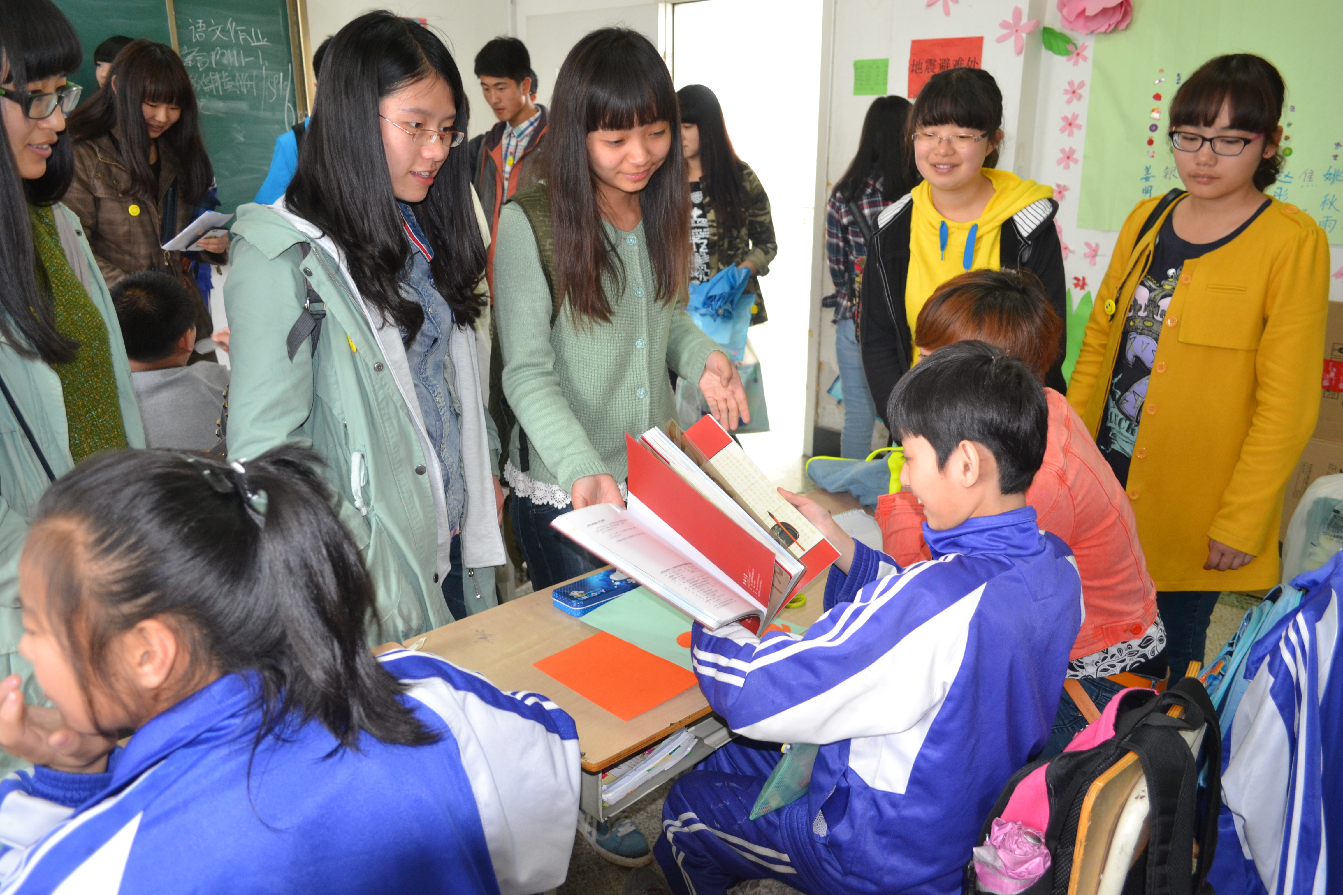 里的刘老师对志愿者们的到来表达了谢意。随后,校领导代表小朋友们将他们手工制作的爱心千纸鹤送给了行政学子,希望可以通过同学们转交给那些社会上的爱心人士。