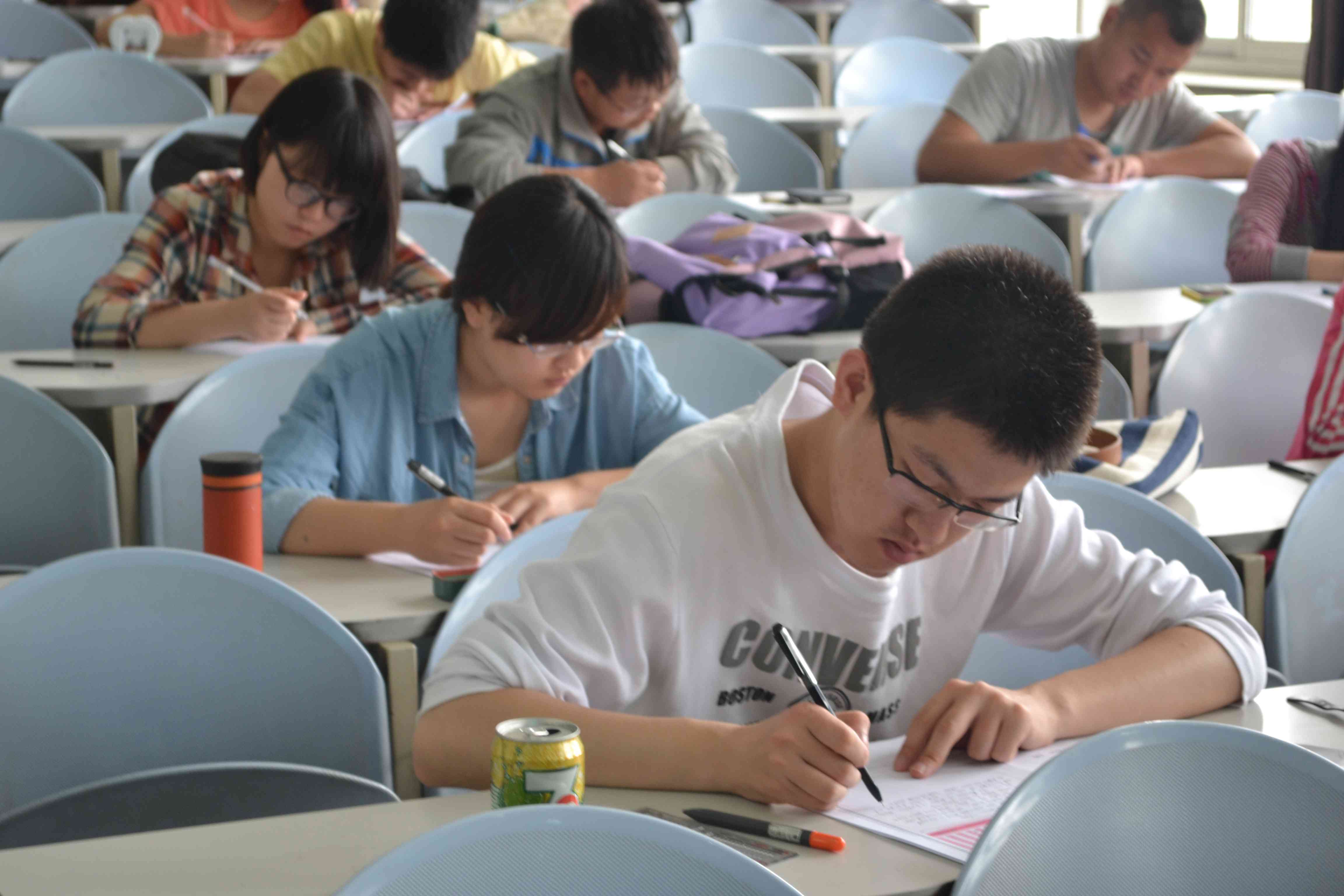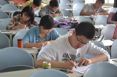 外语协会组织正在备考四级的2012级同学,在中心校区第三教学楼十三阶举办了一场大学英语四级的模拟考试。