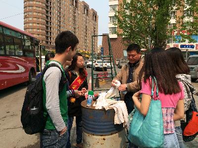中心校区北门的315路公交车终点站慰问公交公司工作人员并进行志愿服务活动。活动得到新文化报等多家媒体报道。