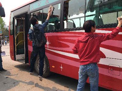 志愿者首先向公交司机及工作人员献上鲜花,表达了对劳动者的敬意;随后向公交司机师傅发放了安全知识宣传单,并进行了安全知识宣讲。工作人员向志愿者讲解了清洁剂的使用方法及清洁公交大巴的要领,志愿者便着手展开清洁公交大巴工作。公交司机刘师傅深有感触:“现在的90后多是独生子女,处处受到家长庇护,对社会上的事了解甚少。大学生就该像你们一样,走出校门,多多锻炼,了解各行各业,更好地认识社会。”刘师傅向志愿者讲述了自己作为一名普通公交车司机的生活:每天四点半起床,晚上九点才能回家。工作辛苦,与家人也缺少交流与沟通的时间。“一行有一行的难处啊”,刘师傅不禁感慨。志愿者表示此次活动让他们学会了规范行为和理解他人,“我能理解那些时而急躁的公交车师傅,而且我再也不会向车座角落里塞垃圾了。多份理解,多份包容,谁都不容易。”