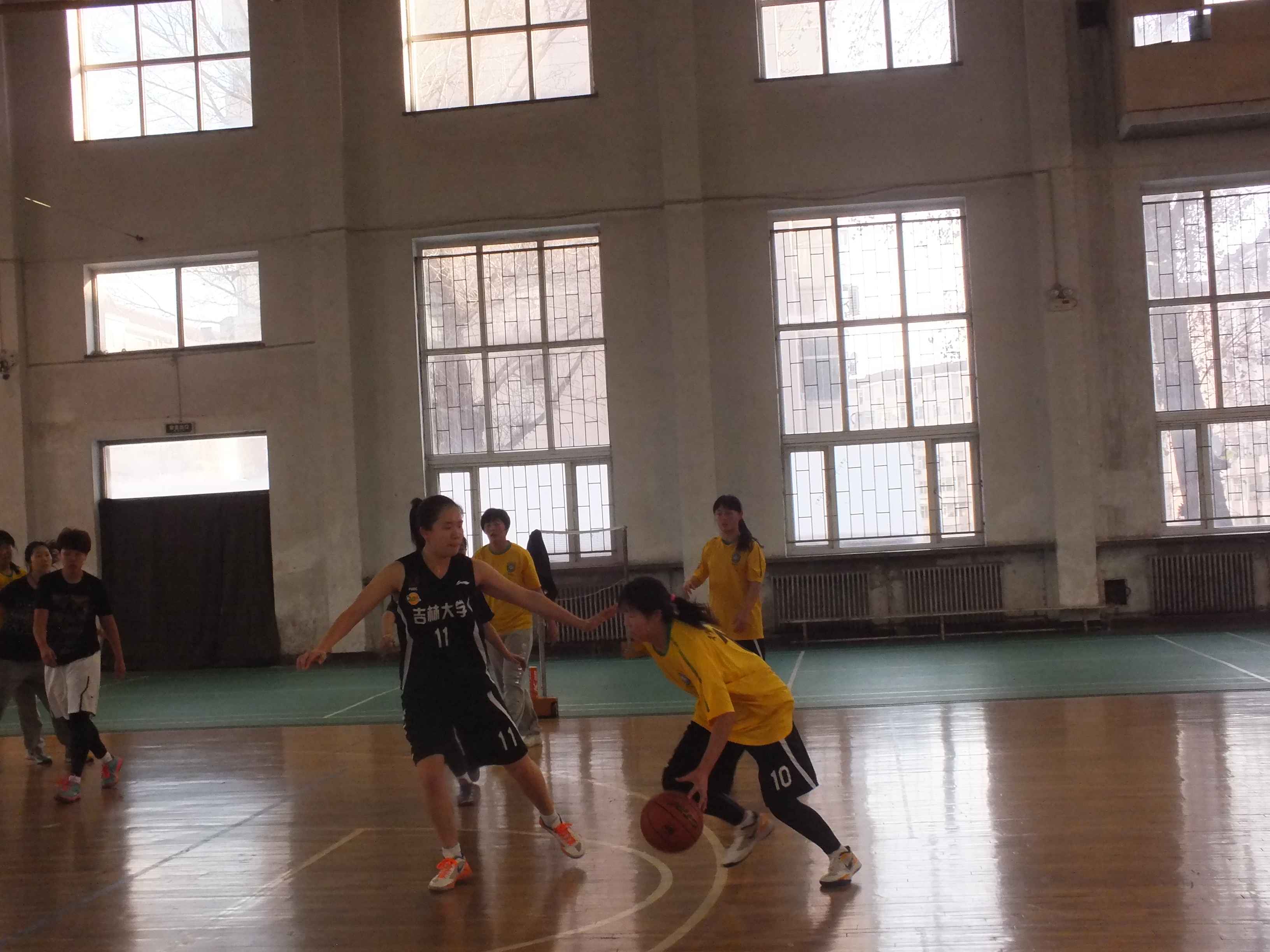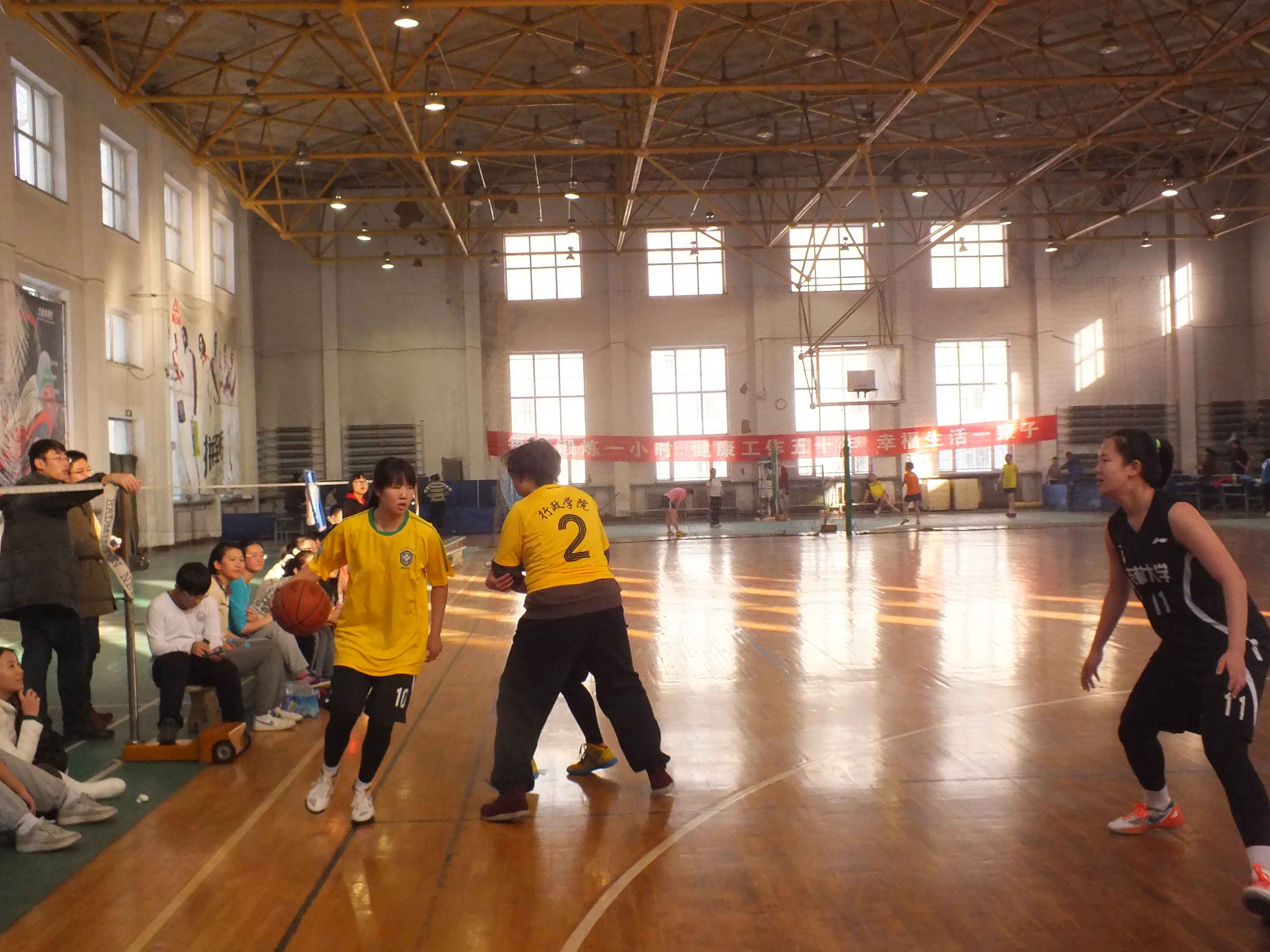 代表队。比赛中,面对技术不俗、旗鼓相当的对手,行政学子毫不示弱,她们精准的投篮、敏捷的带球突破、强悍的篮下进攻和巧妙的协防补位充分展现出行政健儿个人技术和团体协作并重的球队风格,她们的精彩表现也赢得了场下观众的阵阵欢呼。比赛开始时,两支队伍可谓不分伯仲,比分交替上升,战态胶着。在上半场尾声时期,因为行政女篮的一些小失误,比分差距些许拉大,比赛进入小低潮。中场休息时,队员们吸取教训,总结经验,调整战法。下半场一开始,队员便奋起直追,将比分逐渐缩小,凭借过硬的技术和稳定的心理素质,队员们长传快攻,巧妙的突破,一度将比分反超。但最终,行政女篮以微弱劣势不敌文学女篮,位居第二,获得本届比赛的亚军。