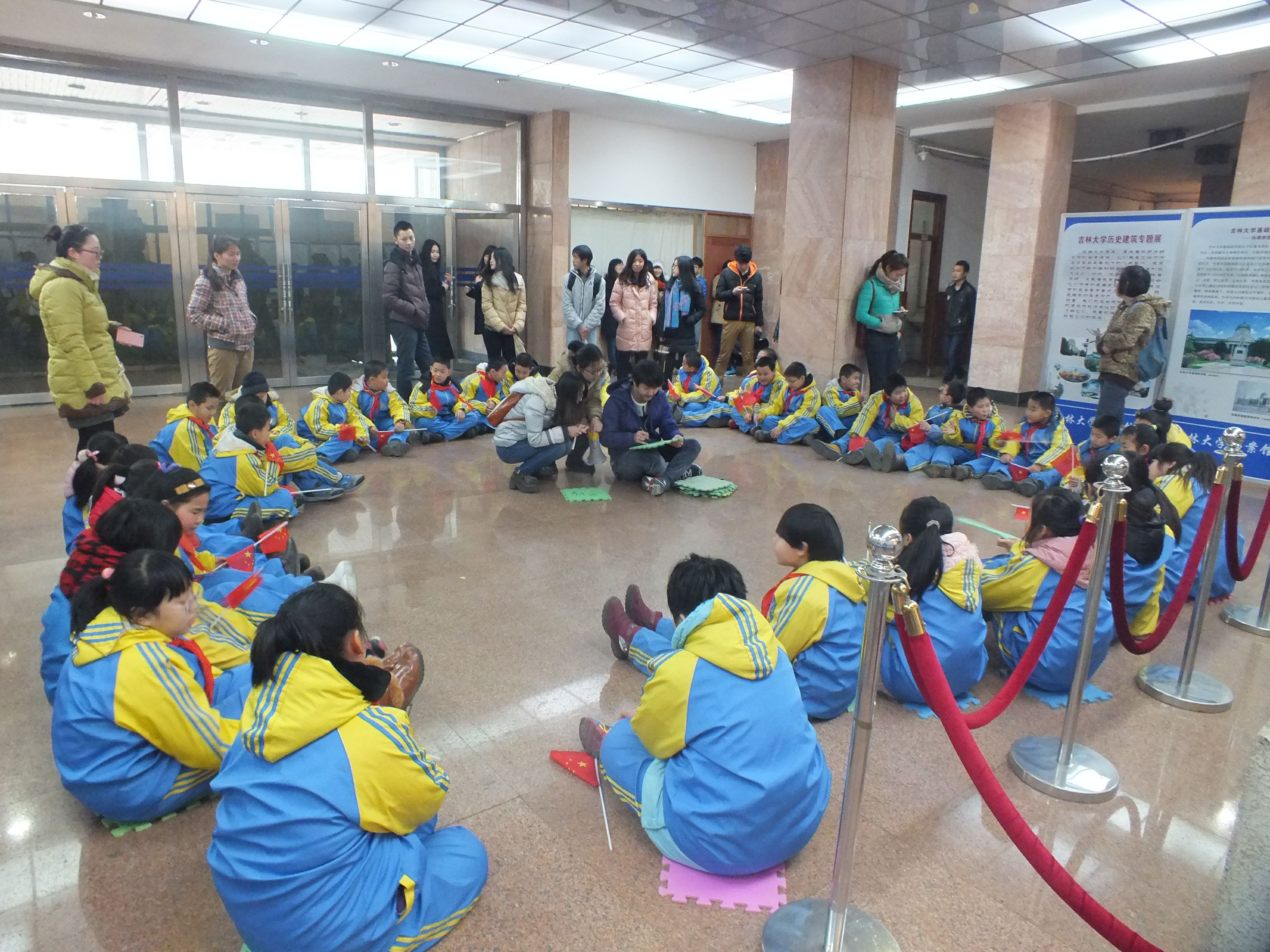 081201班班长滕亮主持,包括感悟吉大校史、素质拓展、品尝吉大美食、浇灌梦想等板块。上午9时许,西安小学师生一行从极速赛车
