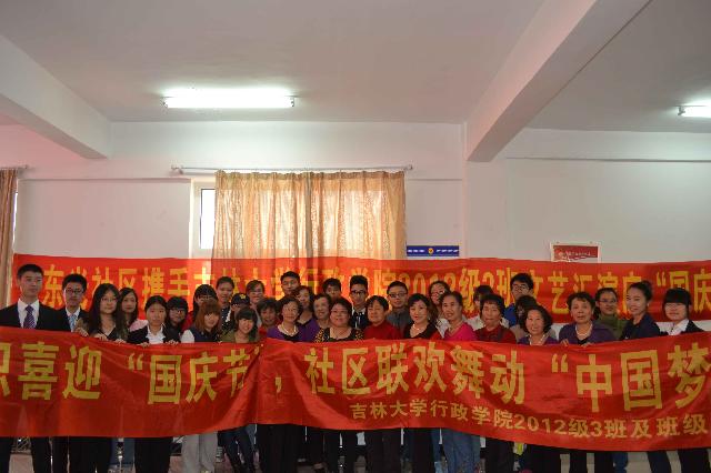 081203班于2013年9月27日与长春市前进街道东光社区携手举办“喜迎国庆节·联欢舞动中国梦”联欢活动。此次活动在东光社区社区服务大楼会议室举行。东光社区党总支书记曹伟,副书记王晶以及东光社区部分群众和极速赛车