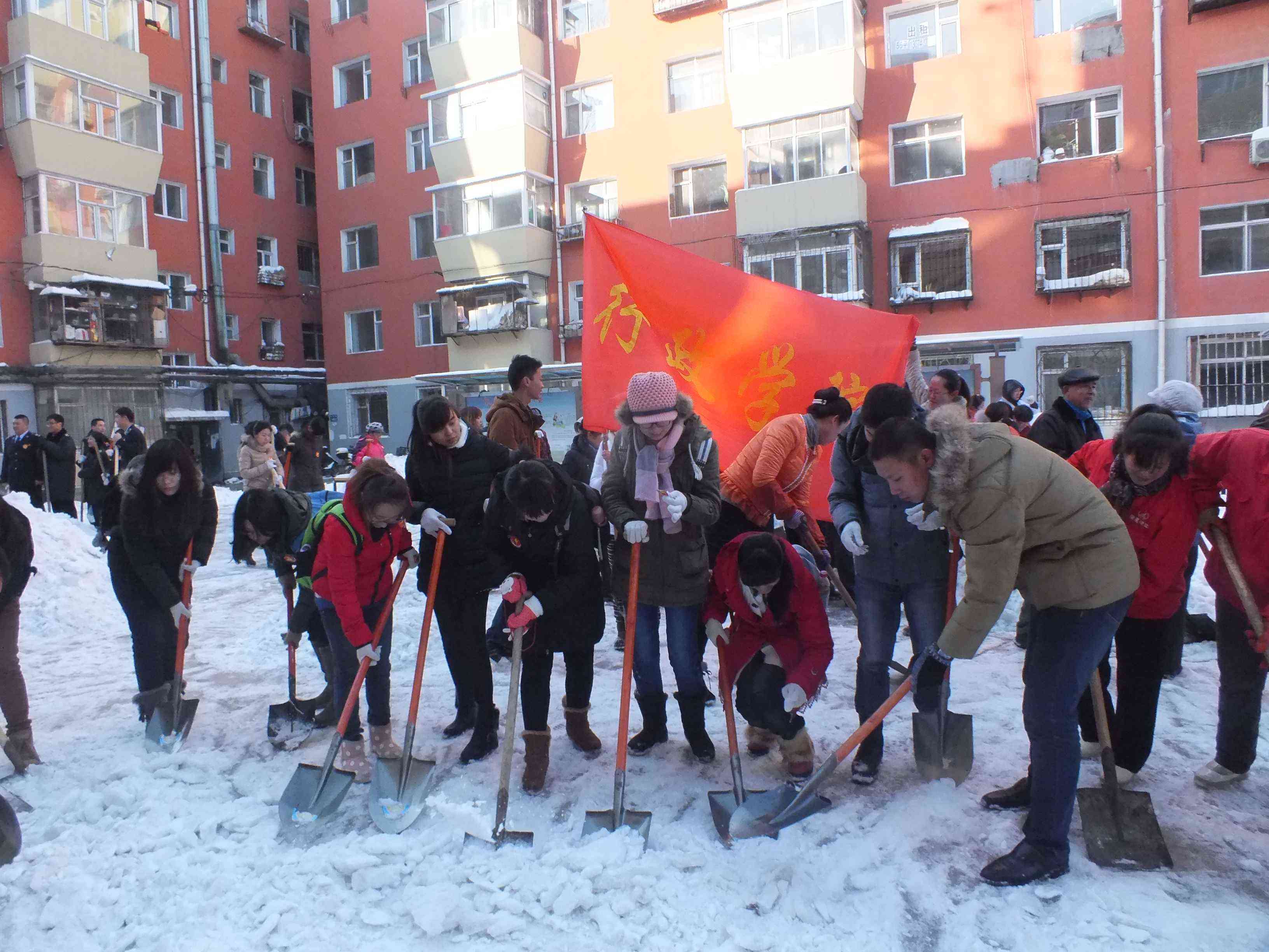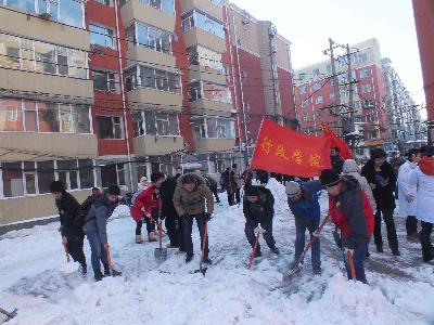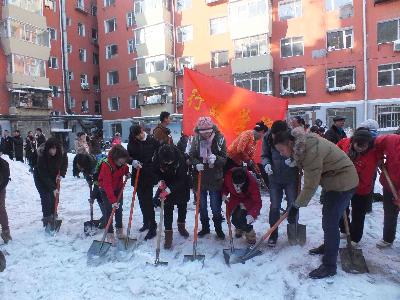 志愿者不畏困难,不惧低温,按照工作人员的安排有条不紊地展开了清雪工作。女同学面对劳动任务丝毫不逊于男生,一铲铲,一锹锹,展现了行政学子朝气蓬勃,踏实耐劳的精神品质。经过志愿者们,近两个小时的辛勤劳动,社区内各主干道路的积雪基本清理完毕。东站十委社区党委书记对志愿者的表现给予了高度的肯定与赞扬,并对志愿者的志愿服务表示衷心的感谢。