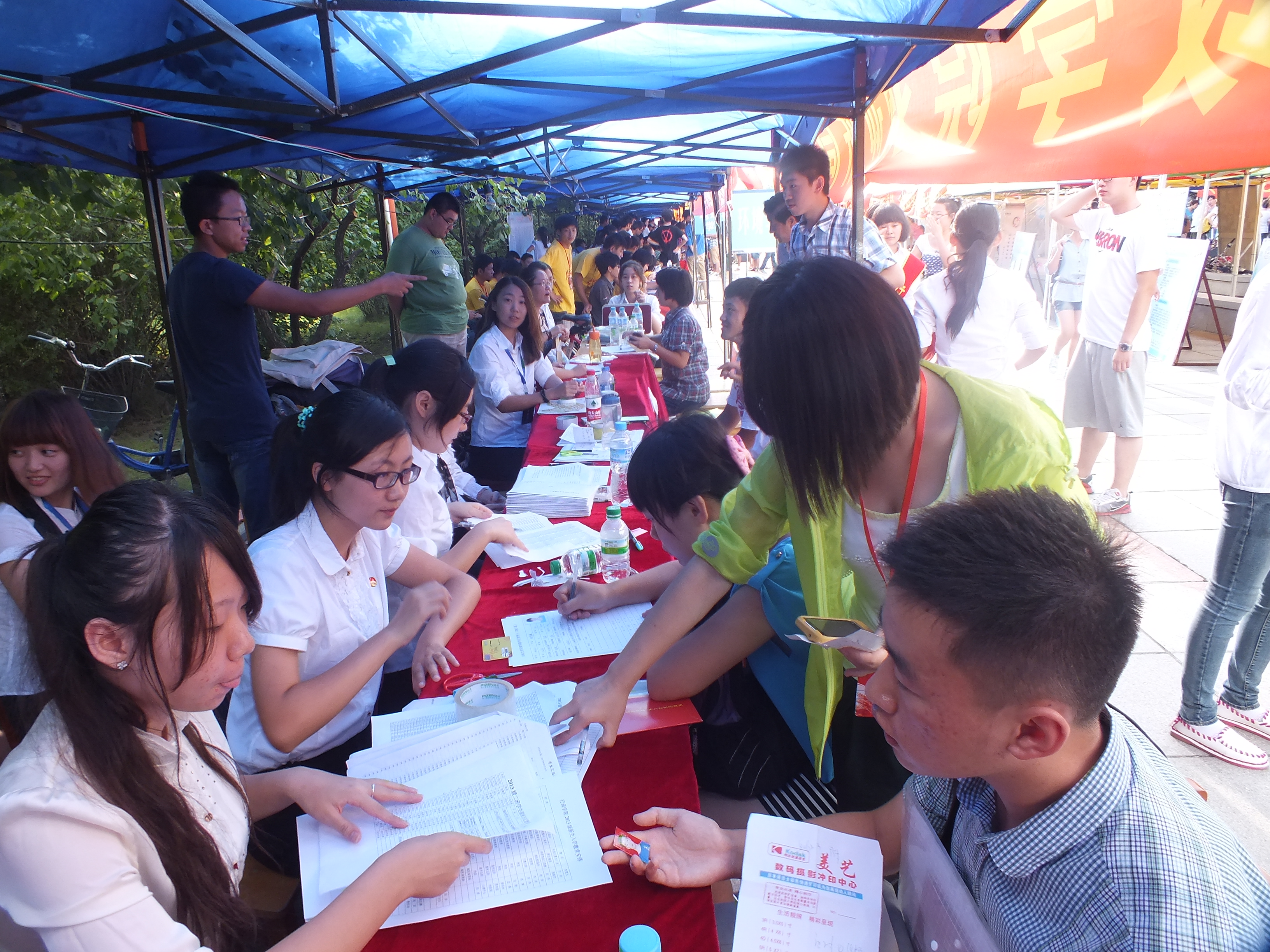 搭起帐篷,拉起条幅,欢迎新生的到来。极速赛车