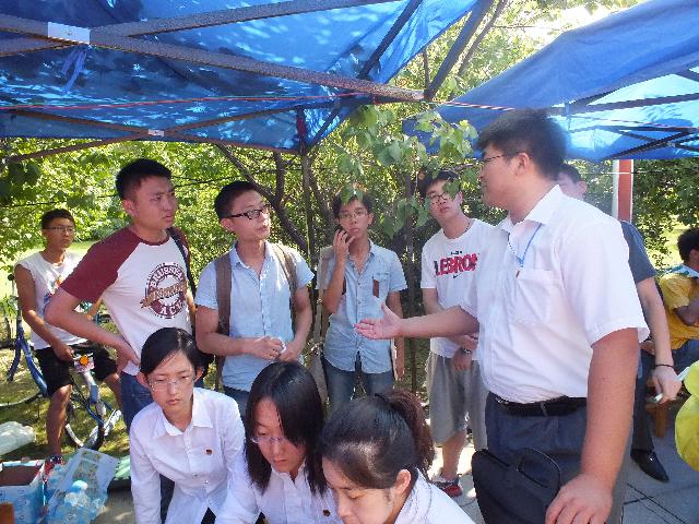 的各级领导也时常来到迎新现场探望工作人员,并对工作予以指导。本科生辅导员刘洋老师更是坚守在迎新工作的第一线,对迎新工作提供指导并为前来报到的新生和家长答疑解惑。