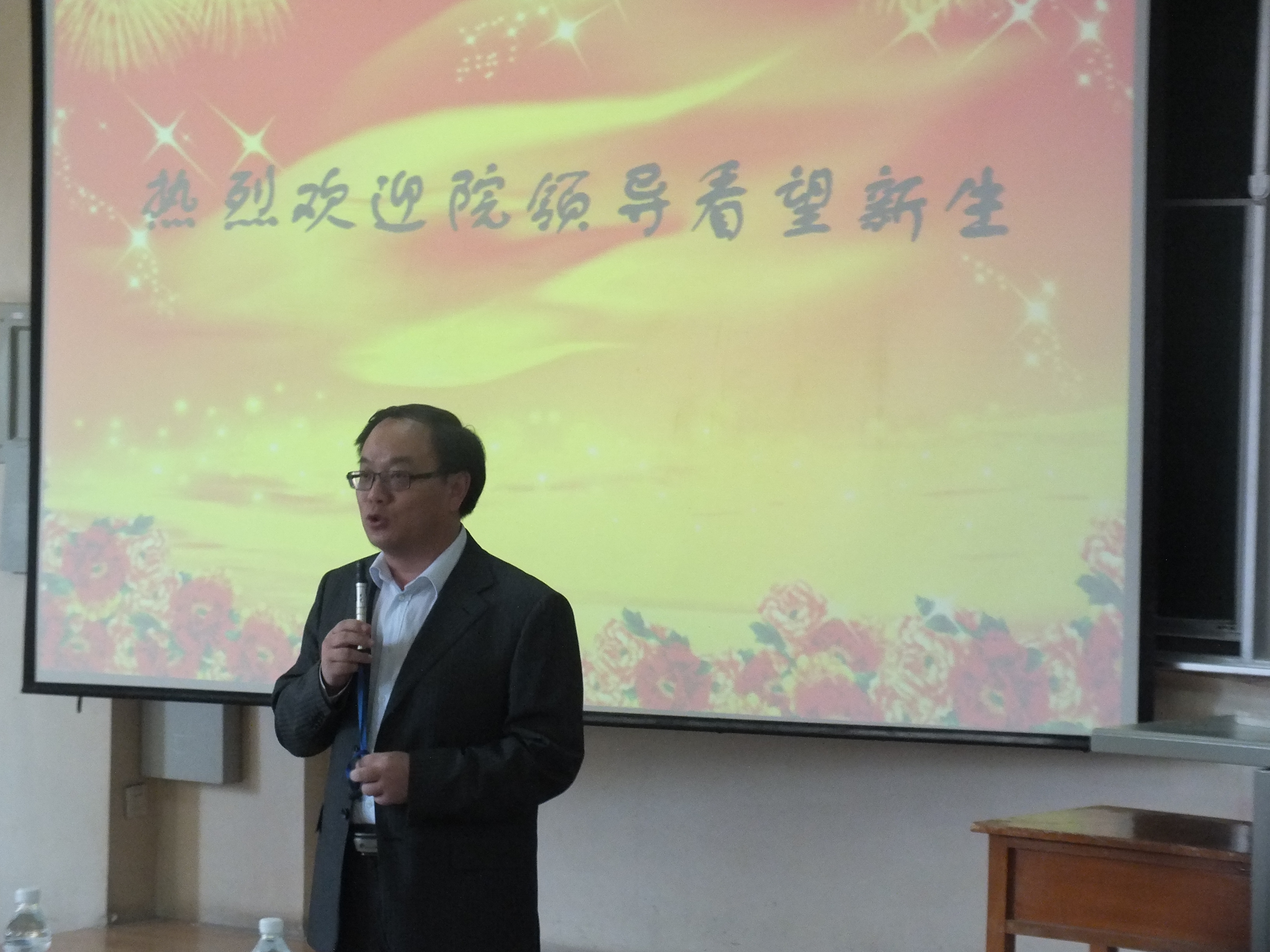 领导为新生致欢迎辞。