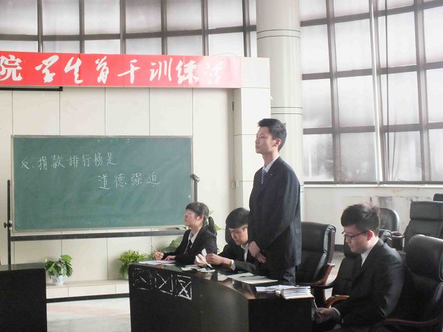 友谊辩论赛于4月14日下午在数学楼报告厅隆重举行。本场比赛双方就“捐款排行榜是道德示范还是道德强迫”这一辩题展开了激烈的辩论。比赛反方是由一辩范子雁(2012级)、二辩高晗(2012级)、三辩姚晗(2012级)、四辩寻累硕(2012级)组成的极速赛车