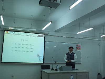 姚璐老师就学生工作与学习的关系、学生干部定位及学生干部的素质要求等方面进行了系统的讲解,使得在场的学生干部深化了对学生干部身份的认识,从而帮助大家更好的了解学生工作,准确的进行角色定位。