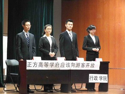 代表队的观点为“高等学府不应该向游客开放”。