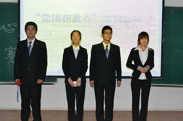 于哪一年获得政治学博士授权点”等题目,参赛选手们对答如流,充分显示出行政学子对校、院史情的了解。第二环节主要考察广大团员对团的认知,本环节形式设置新颖独特,参赛选手以用手机拨打指定号码获得答题机会的方式代替了传统的抢答方式,充分体现了活动的公平与公正,调动了同学们参与的积极性和热情。在问答式比赛环节之余,主题歌曲演唱比赛充分融合了当下时尚节目中的娱乐元素,寓教于乐,既向现场的老师和同学们展示了新一代行政学子的独特风采,也增强了同学们“爱国荣校”的意识。在“争分夺秒”环节中,参赛选手条理清晰、言辞流利,充分展现出扎实的党团知识和良好的个人素质。