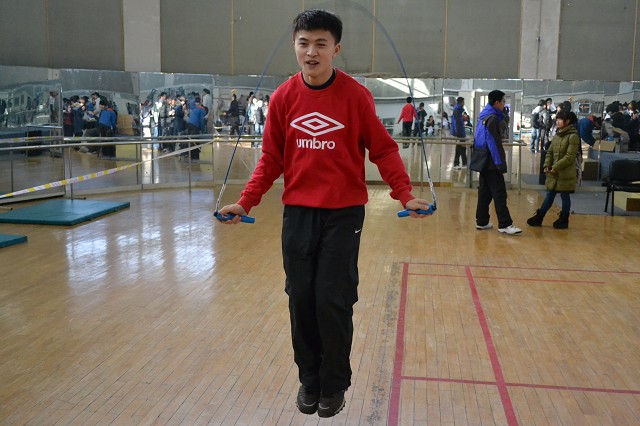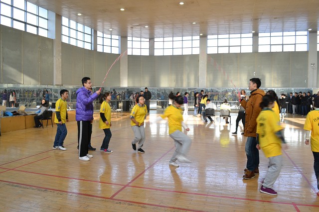2011级学生丰朴鑫在男子组“30秒双摇”比赛环节中表现突出, 30秒内跳出了71个的好成绩,从众多的参赛选手中脱颖而出,最终勇夺冠军。接力赛中,极速赛车