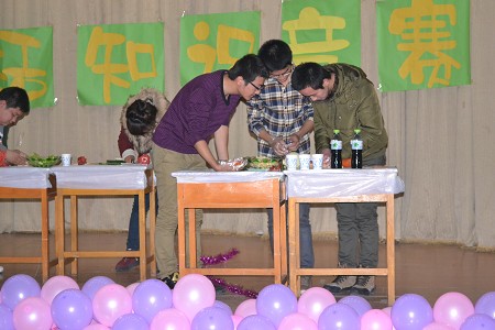 代表队分别展示了本队的废物改造成果。旧杂志改成的多用途储物盒,旧笔记本改成的精致相册等令同学们为之惊叹。其中,行政学子利用旧纸盒改制成的校园建筑模型更是别具一格,赢得全场观众的一致好评。此环节中,评委分别对上述作品进行了点评,他们高度赞扬了同学们的创造精神,并鼓励同学们将这种创新精神发扬光大。比赛中,各极速赛车
