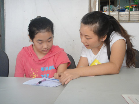 炎热的天气并没有阻挡志愿者奉献爱心的脚步。初到社区,同学们受到了工作人员的热情接待,随后大家一同来到社区活动室与5名小朋友见面。在短暂的自我介绍后,家教活动以一对一的形式开展起来。这是一个特殊的课堂,在这里,没有严肃的气氛,唯有志愿者和孩子们的轻声笑语;在这里,没有师生之间的口传心授,唯有朋友之间的贴心交流。孩子们的问题虽显“天真”,但仍会得到学长们的细心回答;作业本上的题目虽显“稚嫩”,但“老师们”仍会从多维度,多层次进行讲解。不过,这作业也不都是那么容易完成的,如志愿者苏亚丽所说:“现在小学生的作业难度还蛮大的,有一些题不费点心思还真做不上来,不过我会尽全力攻克它,不辜负孩子们的期待。”家教活动进行了约两个小时,在社区工作人员和孩子们的致谢掌声中,本次志愿服务活动圆满结束。