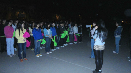 5月10日晚8:30,学工办主任史慕华老师再次来到新篮球场观看同学们的集体舞排练。参赛队员们优雅的舞姿、构思巧妙的队型变换、昂扬向上的精神状态都给史老师留下了深刻的印象。她说,极速赛车
